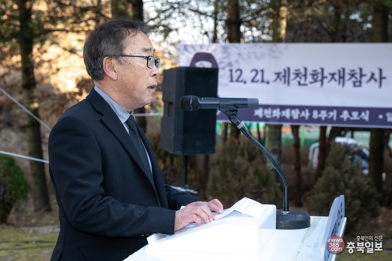 제천화재참사 발생 8주기 추모식에서 희생자들을 추모하는 유가족.