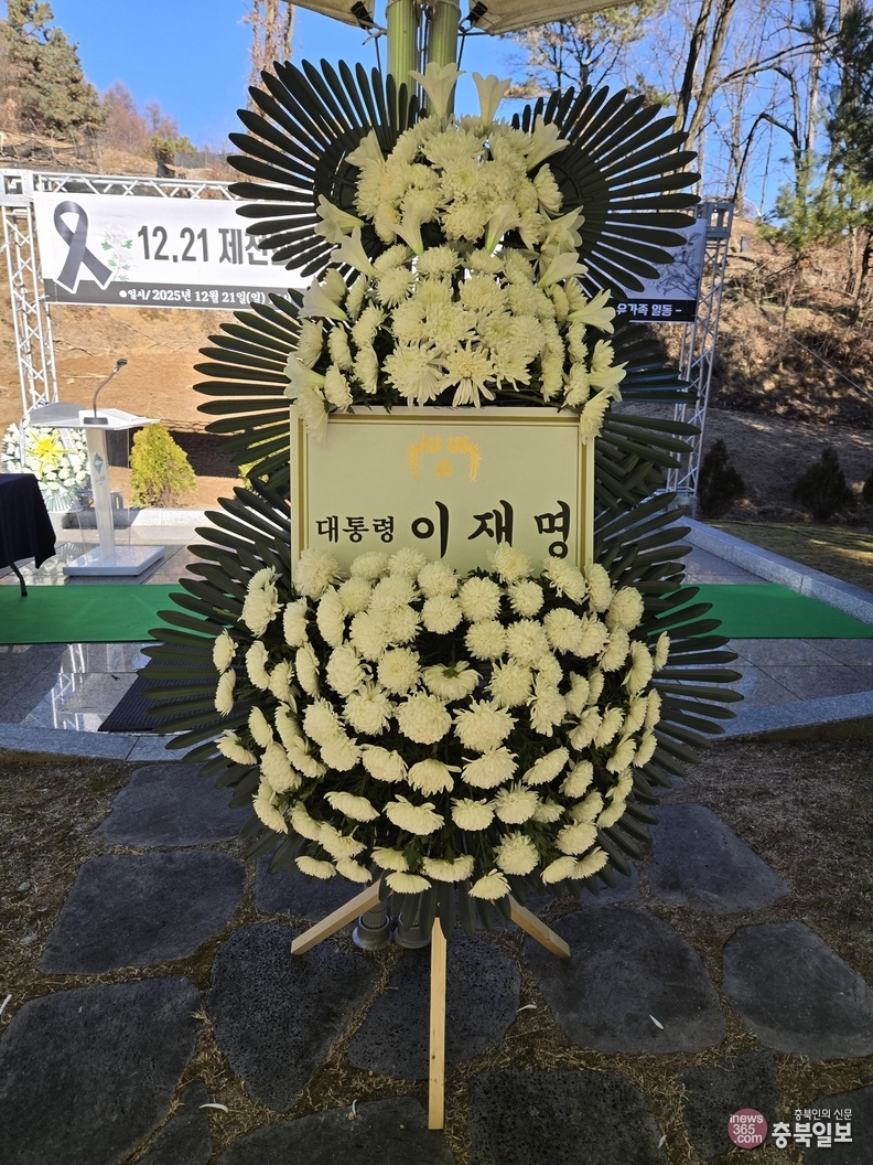 이재명 대통령이 제천화재참사 발생 8주기 희생자 추모식에 보내온 추모 화환.