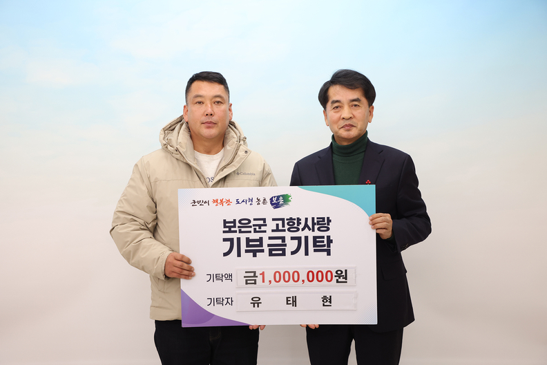 대전에서 활동하는 행사 MC 유태현 씨는 24일 보은군청을 방문, 고향을 응원하기 위해 고향사랑기부금 100만 원을 기탁했다.