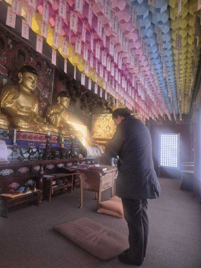 박완희 청주시의원이 청주지역 사찰에서 삼배를 올리고 있다.