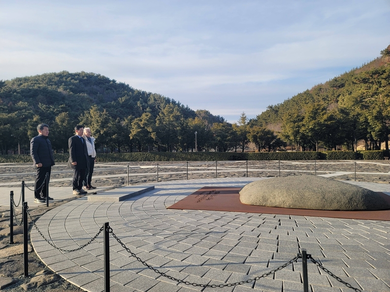 유행열 전 청와대 선임행정관이 봉하마을에서 참배를 하고 있다.