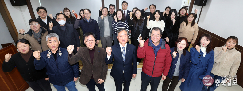 '2026년 충북일보 시무식 및 1월 월례회'가 8일 본보 회의실에서 열렸다. 이날 행사에는 연경환 대표를 비롯한 임직원들이 참석해 새해를 맞아 힘찬 각오로 파이팅을 외치고 있다.