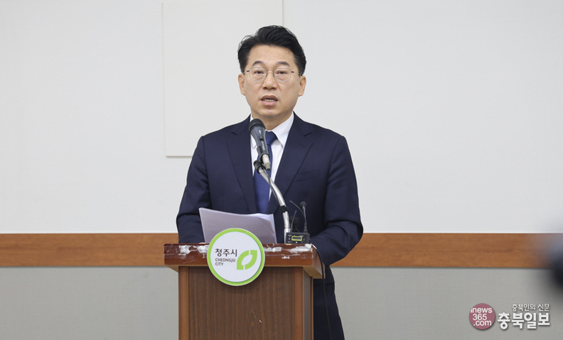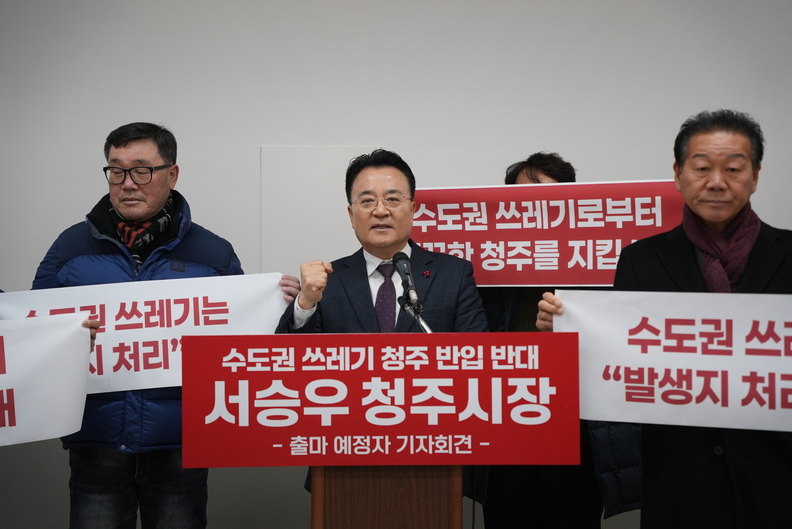 서승우 전 충북도 행정부지사가 13일 청주시청 브리핑룸에서 수도권 쓰레기 유입 반대에 대한 기자회견을 하고 있다.