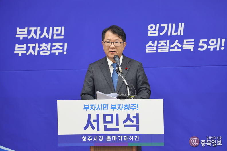 서민석 변호사가 14일 청주시장 선거 출마 기자회견을 하고 있다.