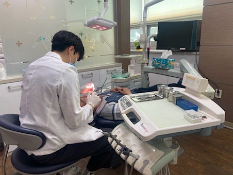 제천지역 한 치과의원 의사가 저소득층 어르신에게 '노인 의치(틀니)' 시술을 해주고 있다.