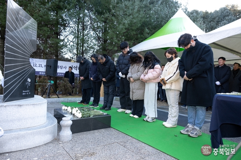 제천화재참사 발생 8주기 추모식에서 희생자들을 추모하는 유가족.