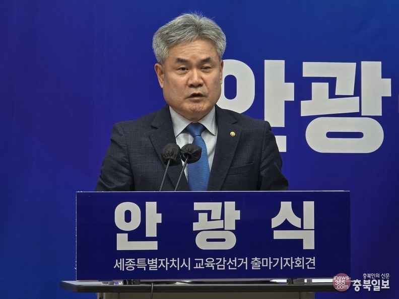 안광식 세종교육희망연구소 상임대표가 20일 시청 브리핑실에서 6·3지방선거 세종시교육감 출마를 선언하고 있다.