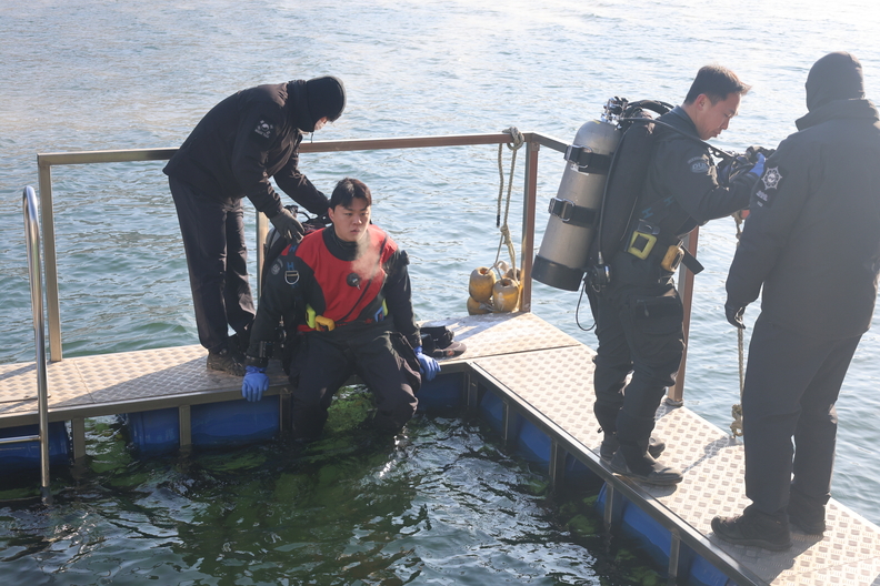 충주소방서 구조대원들이 수난동계훈련을 하고 있다.