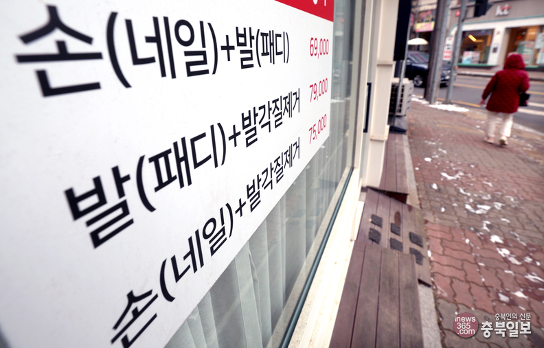 일정 면적 이상 네일샵을 비롯한 이·미용업소에 옥외가격표시제가 시행되고 있으나, 일부 업소를 제외하고는 제대로 지켜지지 않고 있다. 사진은 4일 청주의 한 네일샵 입구에 이벤트 서비스 가격이 표시돼 있다.