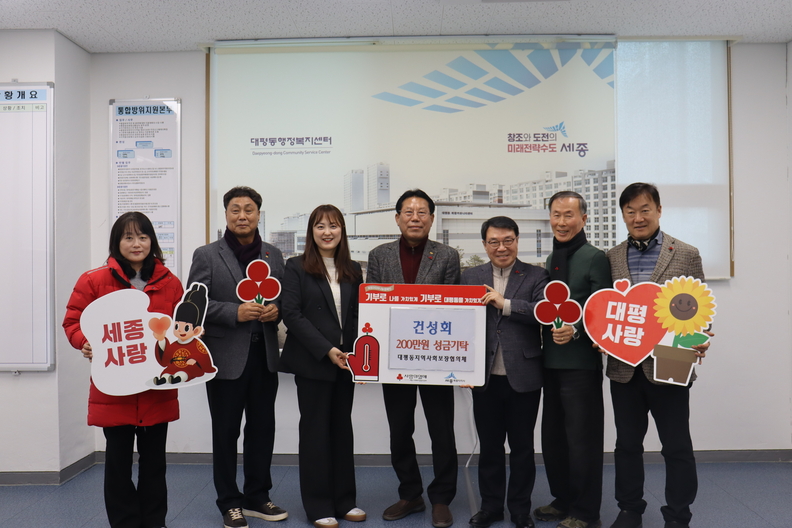 세종 건성회가 5일 이웃돕기성금을 대평동지역사회보장협의체에 전달하고 있다.