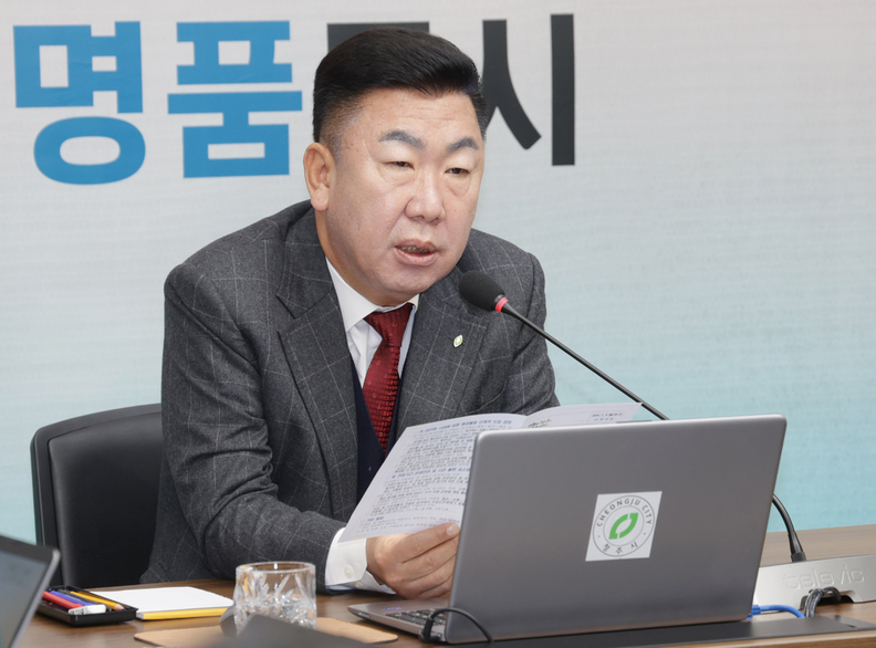 이범석 청주시장이 9일 주간업무보고회의를 주재하고 있다.