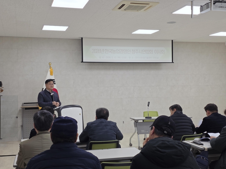한국농어촌공사 청주지사가 청주시 농업인을 대상으로 2026 농지은행사업 추진계획 사업설명회를 실시하고 있다.