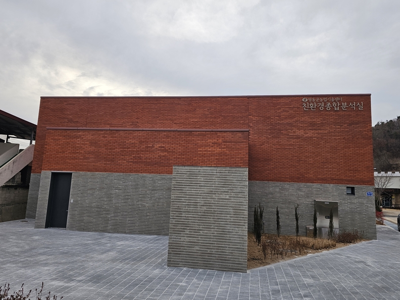 영동군농업기술센터 인근에 새로 문을 연 친환경종합분석실 전경. 총 62억 원을 투입해 조성된 이 시설은 토양·가축분뇨·농산물 잔류농약을 한 곳에서 분석하는 통합 검사 체계를 갖췄다.