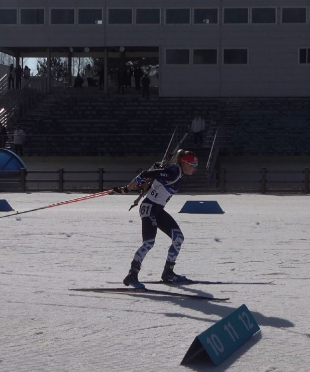 예카테리나(충북 바이애슬론연맹) 선수가 107회 전국 동계체육대회 여자일반부 바이애슬론 경기에 집중하고 있다.