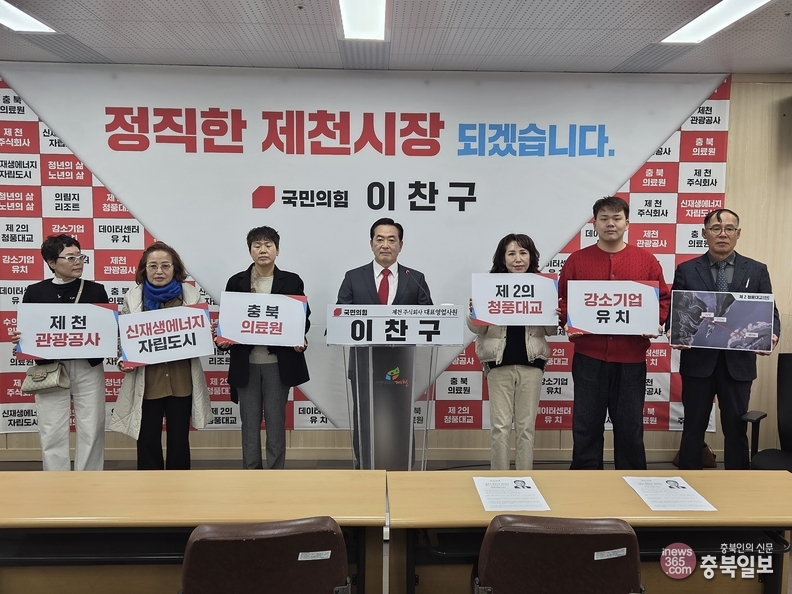 국민의힘 이찬구 제천시장 예비후보가 제천시장 출마를 공식 선언하고 있다.