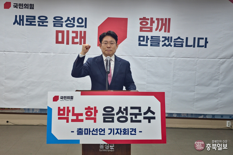 박노학 전 음성군 부군수가 3일 오전 음성군수 선거 출마를 공식 선언하고 있다.