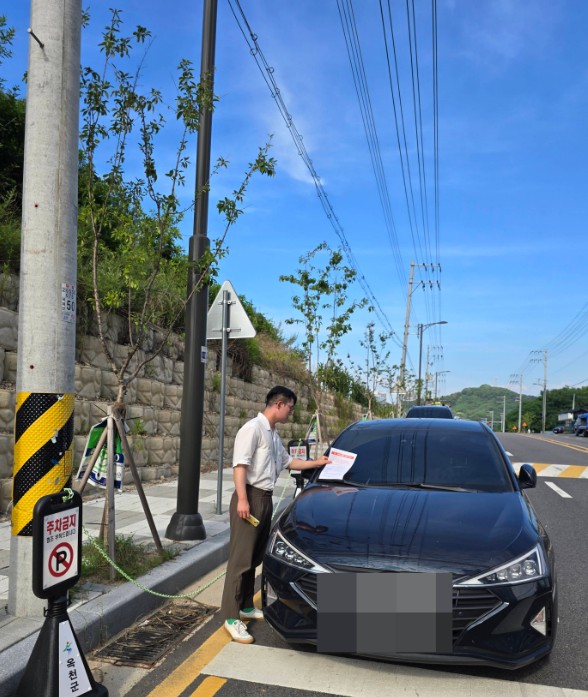 지난해 7월 16일부터 옥천군이 실시한 ‘교통법규 위반 차량 지도·단속’ 현장에서 관계자가 불법 주정차 차량을 대상으로 계도 활동을 벌이고 있다.