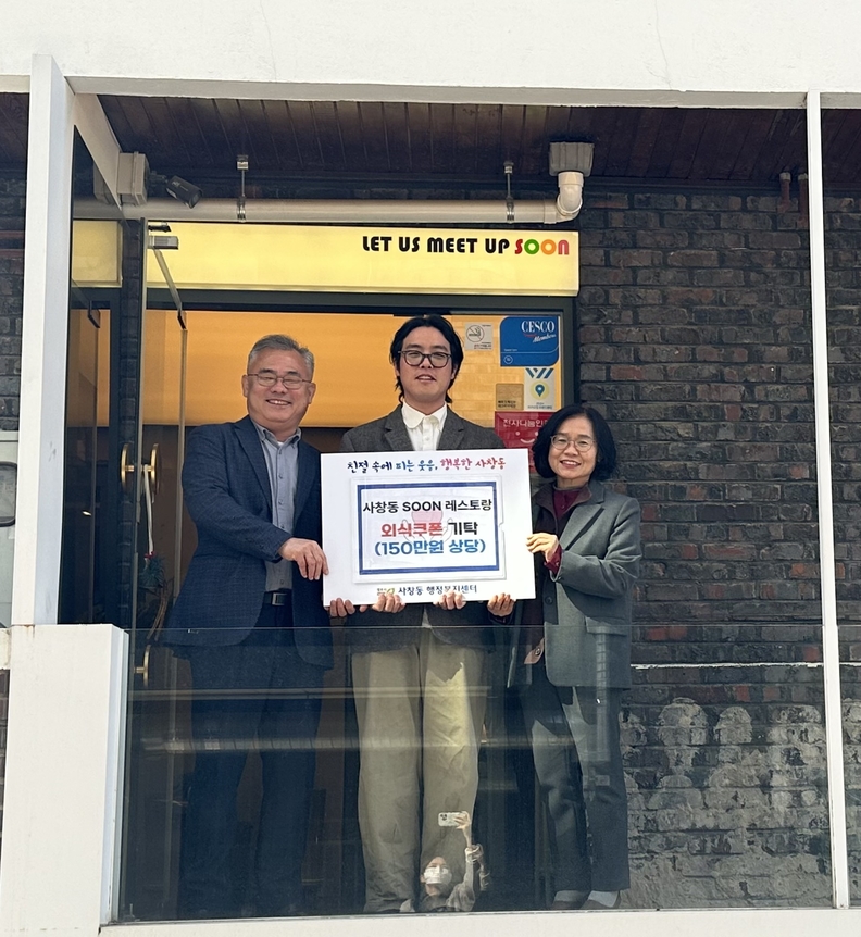 청주시 사창동 soon 레스토랑이 4일 사창동 행정복지센터에 150만원 상당의 외식 쿠폰을 지원하고 있다.