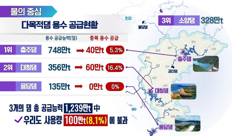 충북 다목적댐 용수 공급 현황.