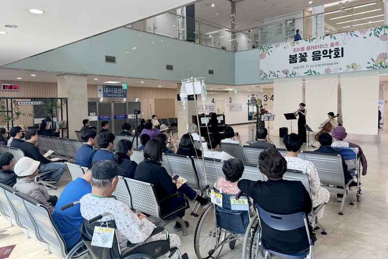 충주의료원에서 환자와 보호자, 내원객을 위한 음악회가 열리고 있다.