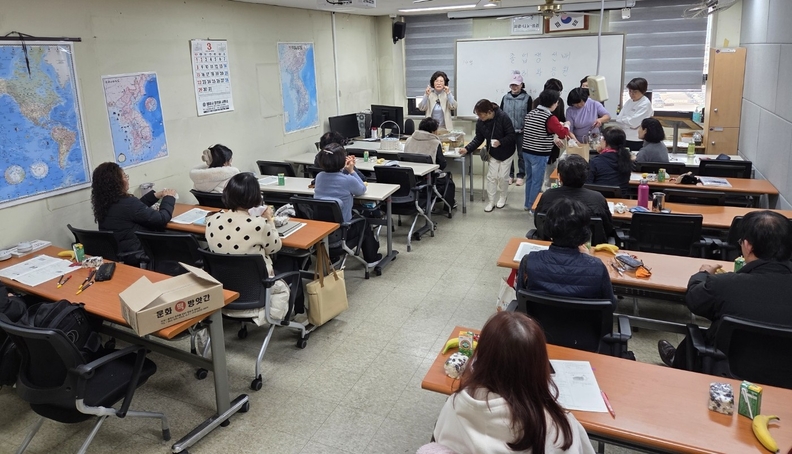 충주열린학교에서 검정고시를 앞둔 후배를 응원하기 위한 합격증진대회가 열리고 있다.