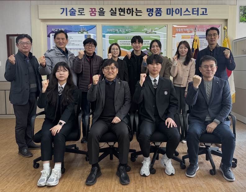 충북에너지고등학교와 청주 상당경찰서 관계자들이 11일 충북에너지고에서 교폭력·청소년 도박 예방 간담회를 다진 뒤 안전한 학교 환경 조성을 위한 상호협력을 약속하고 있다.