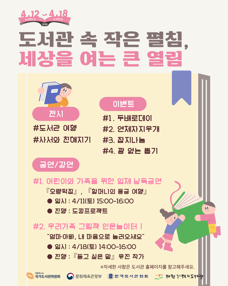 제천기적의도서관이 제62회 도서관 주간을 맞아 마련한 풍성한 독서문화 프로그램과 이벤트.