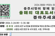[충북일보] 충주시립도서관이 시민 참여형 독서문화 확산을 위해 '책읽는 충주' 대표 도서 선정에 나섰다. 충주시립도서관은 오는 30일까지 2026년 제8회 '책읽는 충주' 독서운동 대표 도서 선정을 위한 시민 투표를 실시한다. 이번 투표는 시민 추천 도서를 바탕으로 사서로 구성된 선정단의 심사를 거쳐 어린이·일반 부문별 각 5권씩 총 10권의 후보 도서를 선정한 뒤, 시민 의견을 반영해 최종 도서를 결정하는 방식으로 진행된다. 어린이 부문 후보 도서는 '꼬꼬ㅤㅂㅝㅇ', '시간 유전자', '쥐들 G들', '해든 분식', '호랑이를 부탁해' 등 5권이며, 일반 부문은 '박곰희 연금 부자 수업', '양면의 조개껍데기', '여름을 한 입 베어 물었더니', '젊음의 나라', '혼모노' 등 5권이 이름을 올렸다. 시는 시민 투표 결과를 토대로 후보군을 압축한 뒤 도서관운영위원회 심의를 거쳐 부문별 각 1권씩 최종 대표 도서를 확정할 계획이다. 투표는 도서관 누리집을 통한 온라인 참여와 함께 시립도서관 본관 및 4개 분관, 시청, 지역 서점 등에 마련된 오프라인 투표판에서 스티커 부착 방식으로 참여할 수 있다. 도서관 관계자는 "시민이 직접 선정한 책을 함께