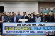 [충북일보] 충북 시민사회 원로와 교육계 인사들이 9일 충북도교육청에서 "진보 교육감 후보는 김성근 한 명"이라며 김성근 충북교육감 선거 예비후보 지지 선언 기자회견을 했다. 지지 선언에는 총 217명이 참여했으며 이날 기자회견에는 김병우 전 충북교육감, 김승환 전 충북문화재단 대표이사, 강태재 충북시민재단 명예이사장, 연방희 전 청주충북환경연합 상임대표, 김수열 전 전국교직원노동조합 충북지부장, 이교배 전 충북진로교육원장, 김영미 전 청주교육지원청 교육장 등이 30여 명이 참석했다. 김병우 전 교육감은 지지발언에서 "김 후보는 역대 민주정부 때도 공약을 만들고 또 그것을 또 직접 실현하는데 참여한 사람"이라며 "지난 대선에서 저와 함께 (이재명) 후보 직속 미래교육자치위원회에 들어가 교육백서 상당 부분을 직접 집필하고 거의 10가지가 넘는 시책들을 직접 만들었던 당사자"라고 소개했다. 이어 "제가 교육감 선거 출마도 강력하게 권고했다"며 "김 후보의 필승을 위해서 작은 힘이나마 보태고 응원하려고 한다"고 덧붙였다. 김 전 교육감은 더불어민주당 충북도당 공직선거후보자추천관리위원회 위원장으로서 정치적 중립이 요구되는 특정 교육감 후보를 지지한 데 대해